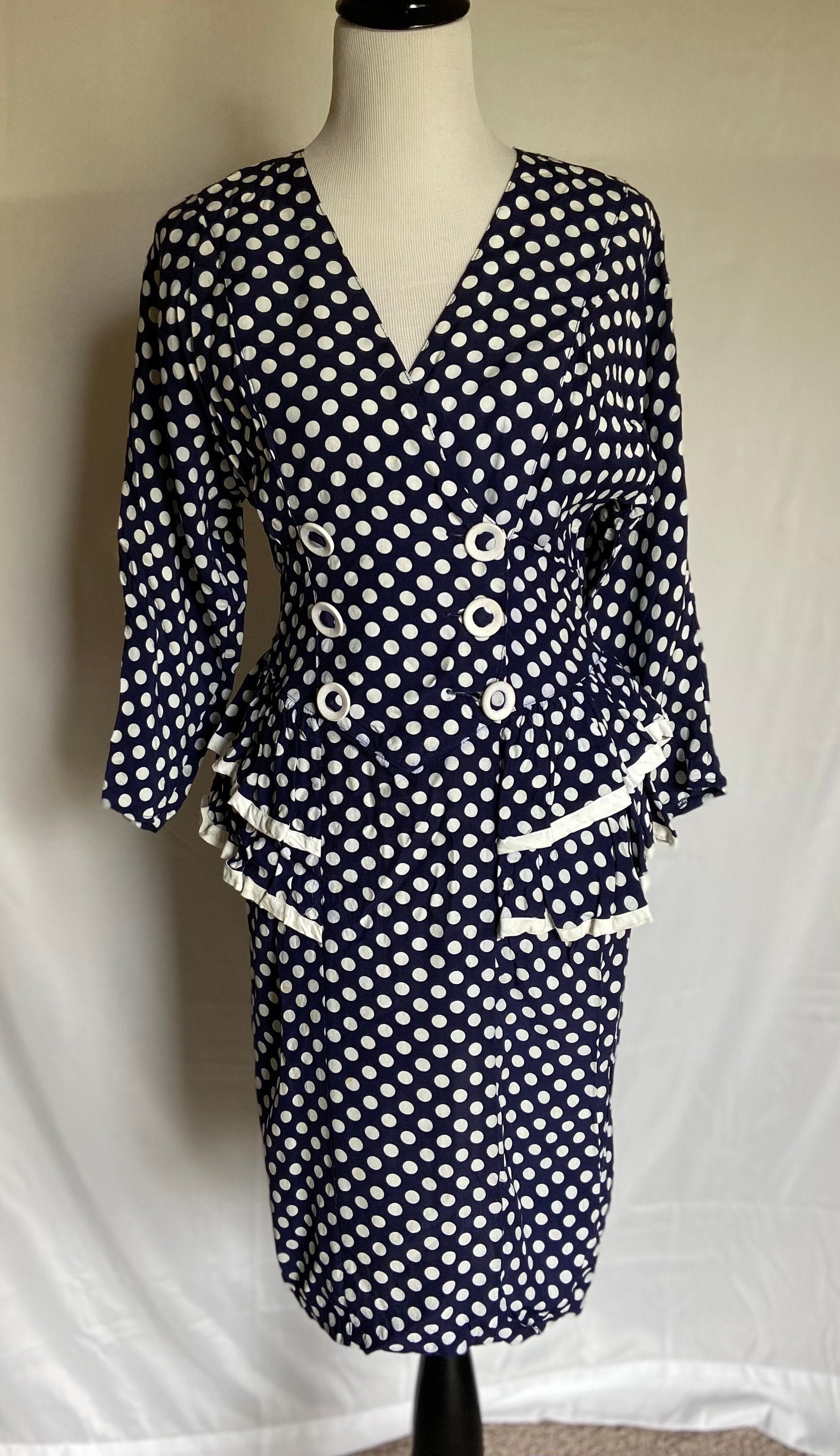 Vintage Style Polka Dot Dress 1950s Style Dress Navy Blue Etsy