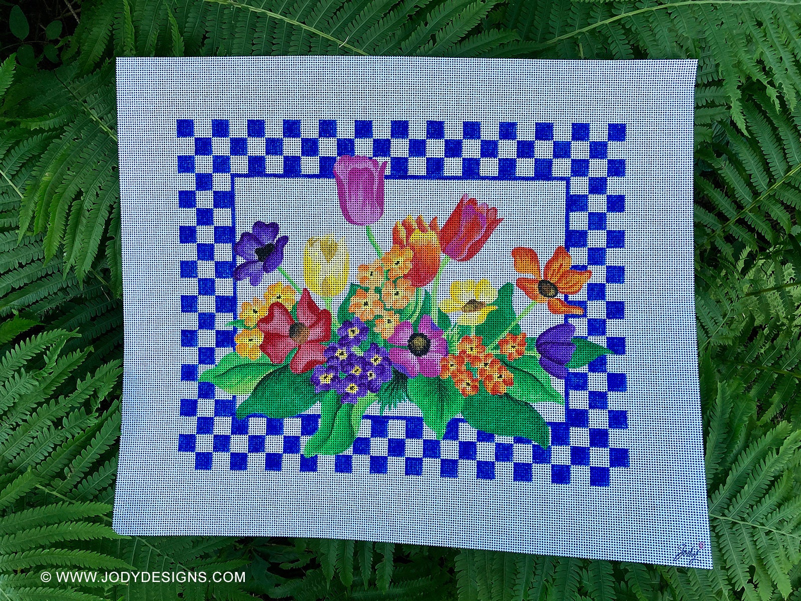 Spring Flowers With Checks Hand Painted Needlepoint Canvas Etsy Uk